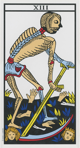 Για όλη την παραπάνω ανάλυση αναδεικνύεται και η σημασία, τελικά, της «ανωνυμίας» της συγκεκριμένης κάρτας Ταρώ. Δεν ολοκληρώνουμε το ψυχικό μας ταξίδι με το θάνατο. Ειδικά στον αρχετυπικό κόσμο του Ταρώ και της Τέχνης. Το «στάδιο» δεκατρία (13) δεν είναι άλλο από αυτό της μεταμόρφωσης. Αν είναι κάτι που πρέπει να θάψουμε είναι οι προκαταλήψεις και οι νεκρωμένες μας πεποιθήσεις. Ακόμα και αυτές για το ίδιο το Θέατρο…